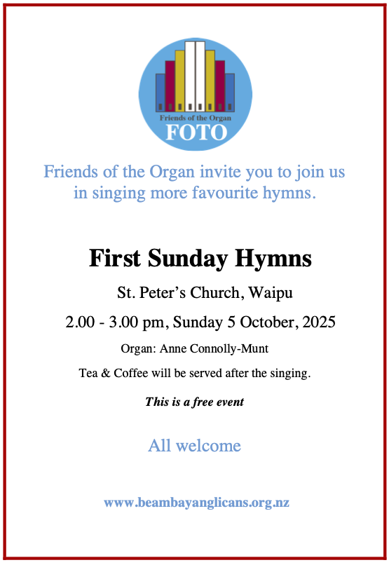 Sunday, 22 June 2025 at 2pm – Our resident organist, Anne Connolly-Munt, presented a variety of organ pieces and a number of Bream Bay children performed pieces they are individually preparing for the September NPACS competition in Whangarei.