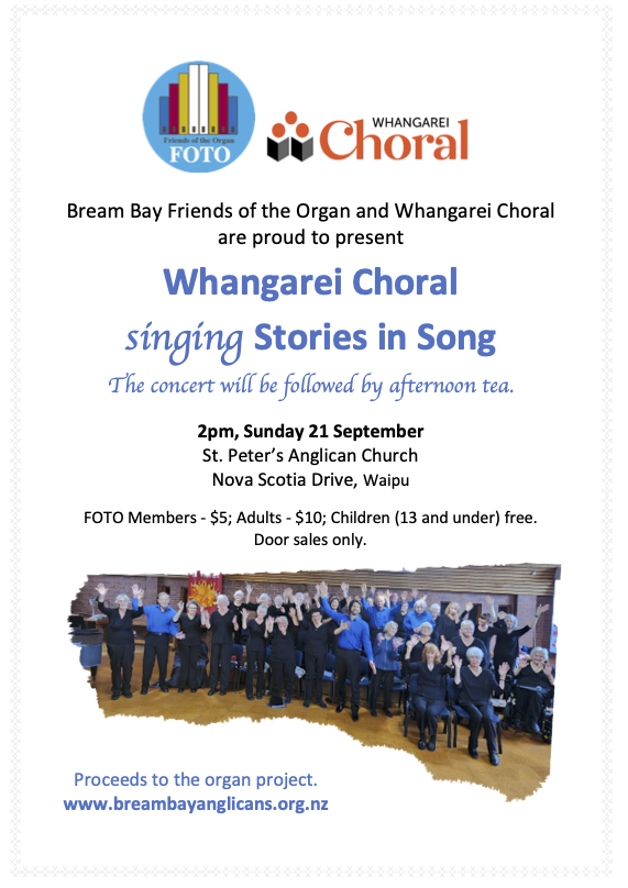 Sunday, 21 September 2025 – Whangarei Choral will join us to sing Folk Songs