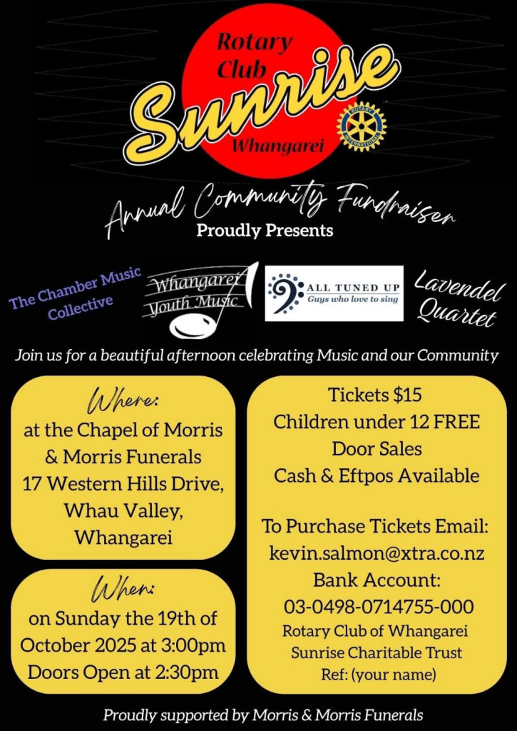 It is a privilege to help in spreading the word about further opportunities to hear the groups who performed so delightfully at our August concert – All Tuned Up, Whangarei Youth Music and the Chamber Music collective.