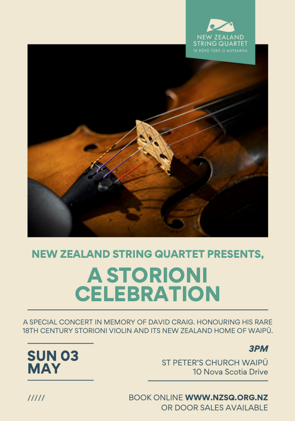 A post on behalf of The New Zealand String Quartet. New Zealand String Quartet presents: A Storioni Celebration Sunday 3 May, 3pm St Peter’s Church Waipū, 10 Nova Scotia Drive Book now: https://www.eventfinda.co.nz/2026/new-zealand-string-quartet-presents-storioni-celebration/whangarei-district . (Door sales will also be available.) Celebrating the Storioni: A Concert in Memory of David Craig Join the New Zealand String Quartet […]